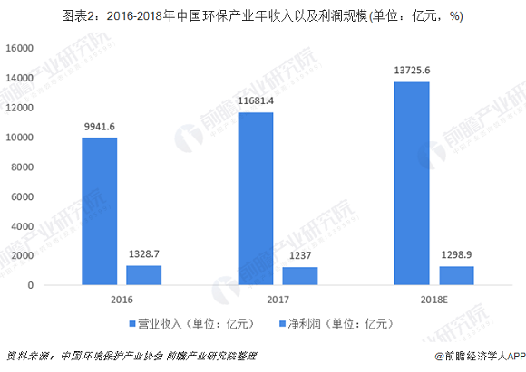 注:中国环境保护产业协会公布的《中国环保产业发展状况报告(2018)》发布时间为2019年2月,数据更新到2017年,2018年为前瞻根据产业状况预测的数据。