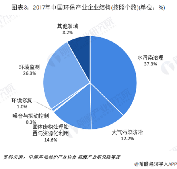 从领域分布看,环保产业主要覆盖水污染防治、大气污染防治、固体废物处理处置与资源化、环境监测4大细分领域,4领域集聚了约90%的环保企业。其中水污染治理占比37.3%,占比最大。